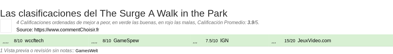 Para una mejor comparación, hemos investigado para usted las ventajas y desventajas de The Surge A Walk in the Park y las notas de datos de los sitios especializados.