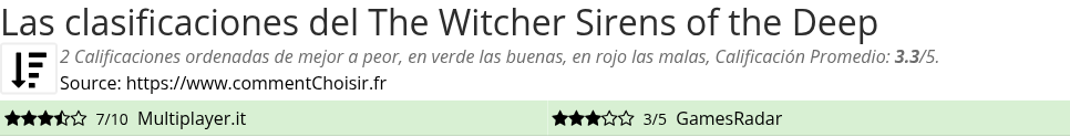 Para una mejor comparación, hemos investigado para usted las ventajas y desventajas de The Witcher Sirens of the Deep y las notas de datos de los sitios especializados.