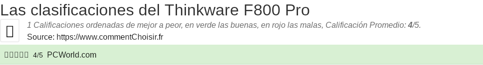 Entre estas pruebas de sitios de Internet y revistas especializadas en DashCam, 1 dieron una calificación y obtenemos una calificación promedio de 4/5 para este producto Thinkware.