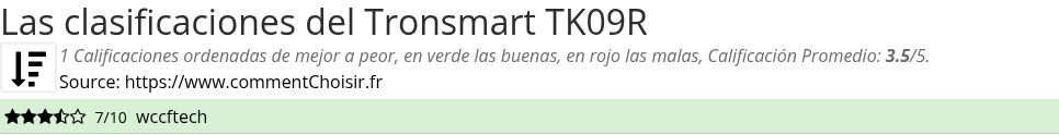 Las calificaciones de los sitios de Internet y las revistas pueden estar sesgadas, al menos con las reseñas de los clientes y los usuarios que compraron Tronsmart TK09R en Amazon o Fnac, estamos seguros de que tenemos reseñas reales sobre este producto. (los enlaces a las tiendas son patrocinados)