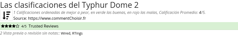 Entre estas pruebas de sitios de Internet y revistas especializadas en , 1 dieron una calificación y obtenemos una calificación promedio de 4/5 para este producto Typhur.