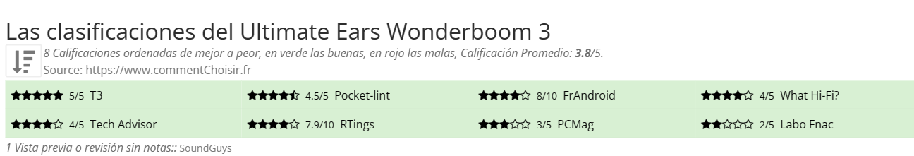 Las calificaciones de los sitios de Internet y las revistas pueden estar sesgadas, al menos con las reseñas de los clientes y los usuarios que compraron Ultimate Ears Wonderboom 3 en Amazon o Fnac, estamos seguros de que tenemos reseñas reales sobre este producto. (los enlaces a las tiendas son patrocinados)