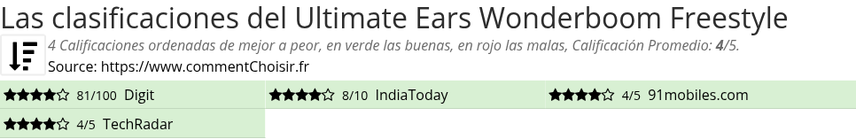 Las calificaciones de los sitios de Internet y las revistas pueden estar sesgadas, al menos con las reseñas de los clientes y los usuarios que compraron Ultimate Ears Wonderboom Freestyle en Amazon o Fnac, estamos seguros de que tenemos reseñas reales sobre este producto. (los enlaces a las tiendas son patrocinados)