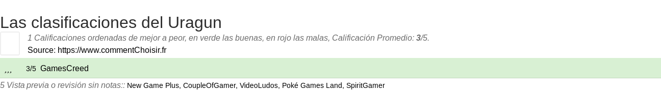 Entre estas pruebas de sitios de Internet y revistas especializadas en Videojuego, 2 dieron una calificación y obtenemos una calificación promedio de 3.1/5 para este producto Uragun.