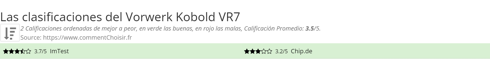 Las calificaciones de los sitios de Internet y las revistas pueden estar sesgadas, al menos con las reseñas de los clientes y los usuarios que compraron Vorwerk Kobold VR7 en Amazon o Fnac, estamos seguros de que tenemos reseñas reales sobre este producto. (los enlaces a las tiendas son patrocinados)