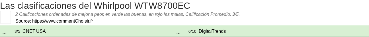 Aquí están las 2 revisiones y pruebas encontradas en el Videojuego Whirlpool WTW8700EC con las 2 calificaciones y comentarios de los evaluadores en su revisión.