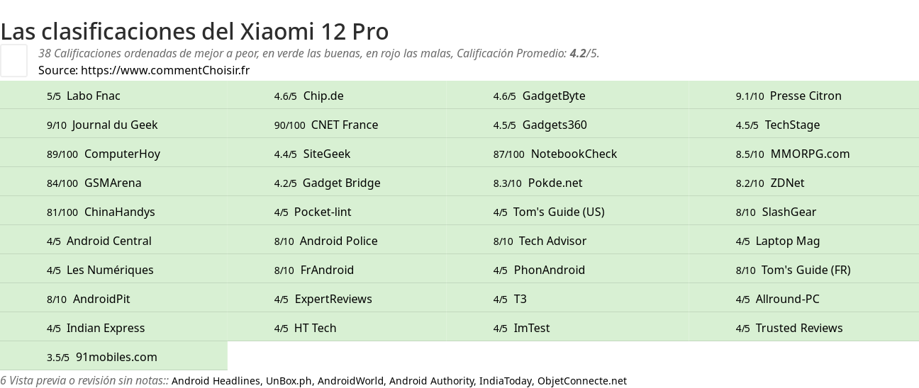 Las calificaciones de los sitios de Internet y las revistas pueden estar sesgadas, al menos con las reseñas de los clientes y los usuarios que compraron Xiaomi 12 Pro en Amazon o Fnac, estamos seguros de que tenemos reseñas reales sobre este producto. (los enlaces a las tiendas son patrocinados)