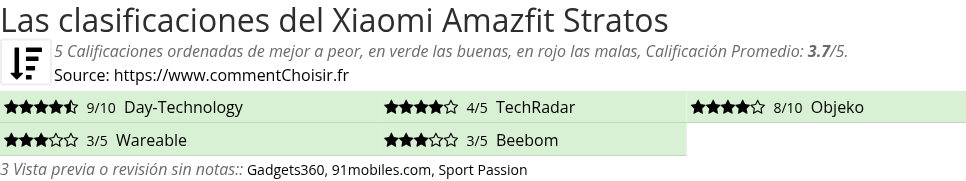 Las calificaciones de los sitios de Internet y las revistas pueden estar sesgadas, al menos con las reseñas de los clientes y los usuarios que compraron Xiaomi Amazfit Stratos en Amazon o Fnac, estamos seguros de que tenemos reseñas reales sobre este producto. (los enlaces a las tiendas son patrocinados)