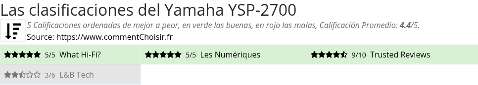 Las calificaciones de los sitios de Internet y las revistas pueden estar sesgadas, al menos con las reseñas de los clientes y los usuarios que compraron Yamaha YSP-2700 en Amazon o Fnac, estamos seguros de que tenemos reseñas reales sobre este producto. (los enlaces a las tiendas son patrocinados)