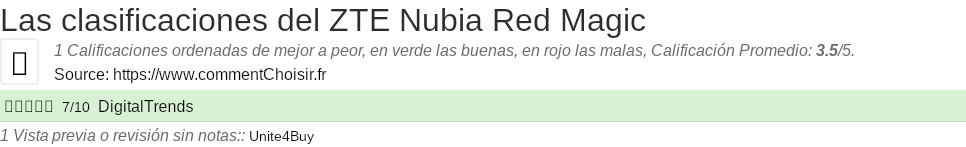 Las calificaciones de los sitios de Internet y las revistas pueden estar sesgadas, al menos con las reseñas de los clientes y los usuarios que compraron ZTE Nubia Red Magic en Amazon o Fnac, estamos seguros de que tenemos reseñas reales sobre este producto. (los enlaces a las tiendas son patrocinados)