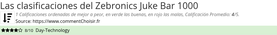 Entre estas pruebas de sitios de Internet y revistas especializadas en Barras de sonido, 1 dieron una calificación y obtenemos una calificación promedio de 4/5 para este producto Zebronics.