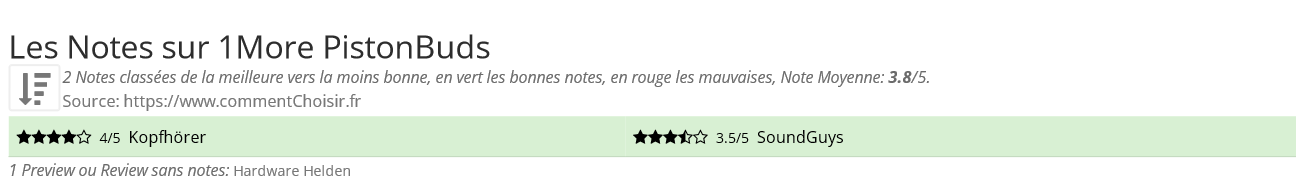 Les notes des sites et magazines internet peuvent etre peut-etre biaisés, au moins avec les avis client et des utilisateurs qui ont acheté 1More PistonBuds sur amazon ou la fnac, on est sur d'avoir de vrais critiques sur ce produit. (les liens vers les magasins sont sponsorisés).