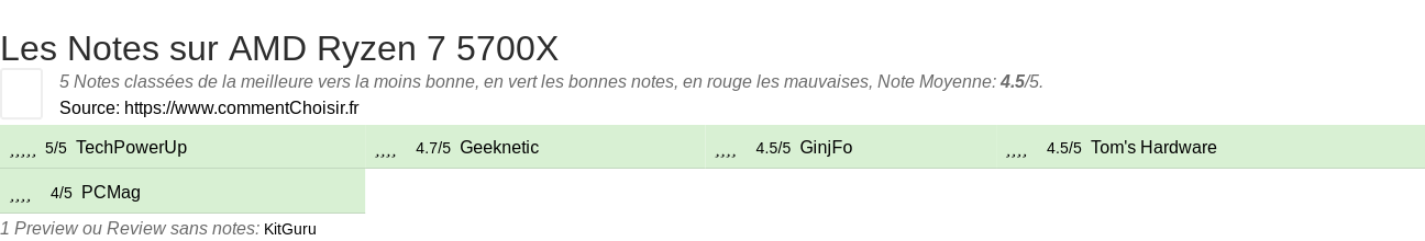 Les notes des sites et magazines internet peuvent etre peut-etre biaisés, au moins avec les avis client et des utilisateurs qui ont acheté AMD Ryzen 7 5700X sur amazon ou la fnac, on est sur d'avoir de vrais critiques sur ce produit. (les liens vers les magasins sont sponsorisés).