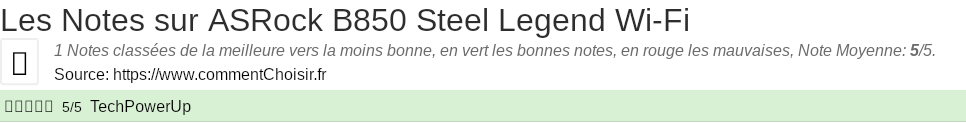 Les notes des sites et magazines internet peuvent etre peut-etre biaisés, au moins avec les avis client et des utilisateurs qui ont acheté ASRock B850 Steel Legend Wi-Fi sur amazon ou la fnac, on est sur d'avoir de vrais critiques sur ce produit. (les liens vers les magasins sont sponsorisés).