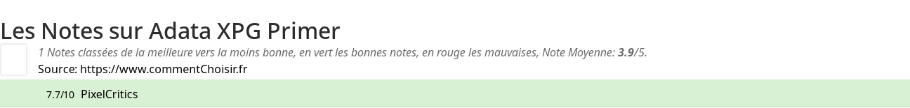 Voici tous les 1 avis et les tests que nous avons trouvé sur le Composants Adata XPG Primer avec les 1 notes et les commentaires des testeurs dans leur review.