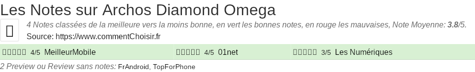 Pour mieux comparer, nous avons cherché pour vous les avantages et inconvénients de Archos Diamond Omega et les notes données par les sites spécialisés.