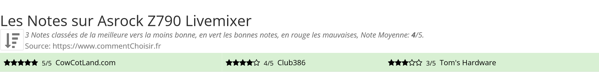 Les notes des sites et magazines internet peuvent etre peut-etre biaisés, au moins avec les avis client et des utilisateurs qui ont acheté Asrock Z790 Livemixer sur amazon ou la fnac, on est sur d'avoir de vrais critiques sur ce produit. (les liens vers les magasins sont sponsorisés).