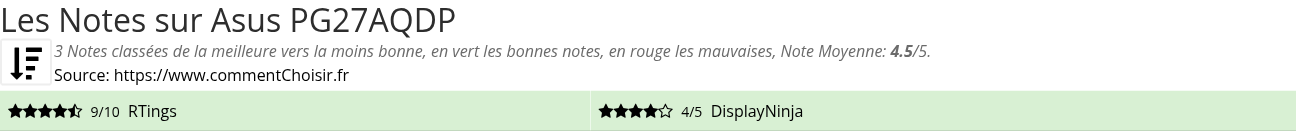Les notes des sites et magazines internet peuvent etre peut-etre biaisés, au moins avec les avis client et des utilisateurs qui ont acheté Asus PG27AQDP sur amazon ou la fnac, on est sur d'avoir de vrais critiques sur ce produit. (les liens vers les magasins sont sponsorisés).