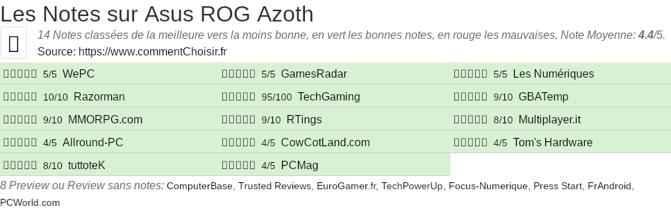 Les notes des sites et magazines internet peuvent etre peut-etre biaisés, au moins avec les avis client et des utilisateurs qui ont acheté Asus ROG Azoth sur amazon ou la fnac, on est sur d'avoir de vrais critiques sur ce produit. (les liens vers les magasins sont sponsorisés).
