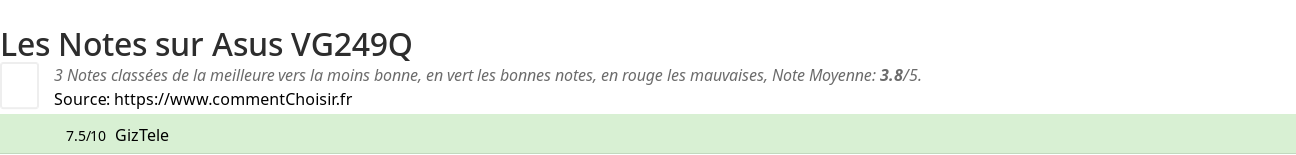 Voici tous les 5 avis et les tests que nous avons trouvé sur le Moniteur Asus VG249Q avec les 5 notes et les commentaires des testeurs dans leur review.