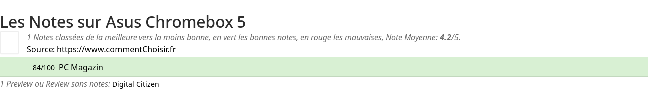 Pour mieux comparer, nous avons cherché pour vous les avantages et inconvénients de Asus Chromebox 5 et les notes données par les sites spécialisés.