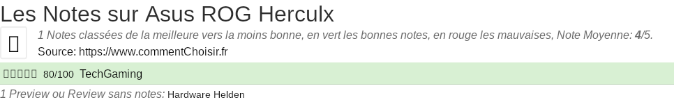Voici tous les 2 avis et les tests que nous avons trouvé sur le Jeux Asus ROG Herculx avec les 1 notes et les commentaires des testeurs dans leur review.