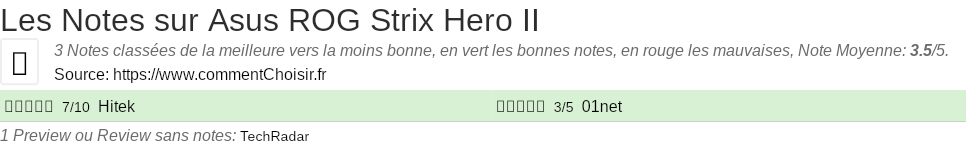 Pour mieux comparer, nous avons cherché pour vous les avantages et inconvénients de Asus ROG Strix Hero II et les notes données par les sites spécialisés.