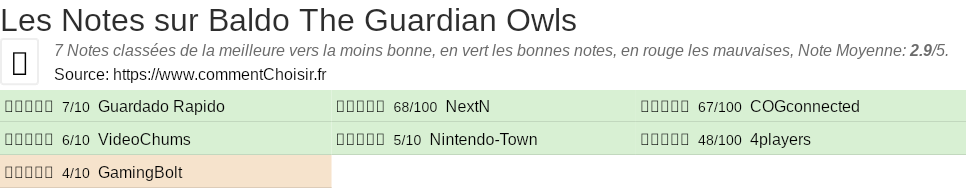 Les "Pour et Contre" sur Baldo The Guardian Owls détails des avis et notes