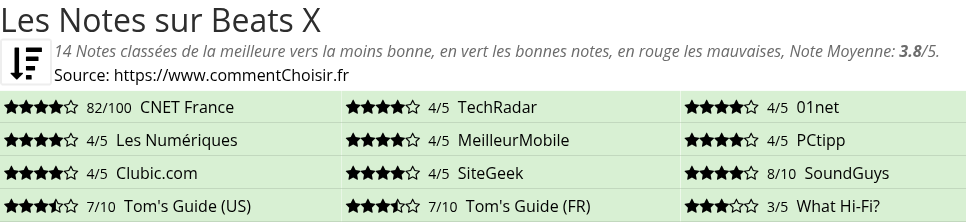 Les notes des sites et magazines internet peuvent etre peut-etre biaisés, au moins avec les avis client et des utilisateurs qui ont acheté Beats X sur amazon ou la fnac, on est sur d'avoir de vrais critiques sur ce produit. (les liens vers les magasins sont sponsorisés).