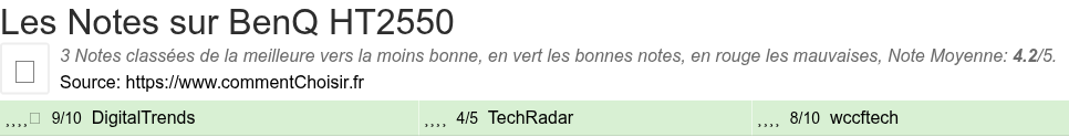 Pour mieux comparer, nous avons cherché pour vous les avantages et inconvénients de BenQ HT2550 et les notes données par les sites spécialisés.