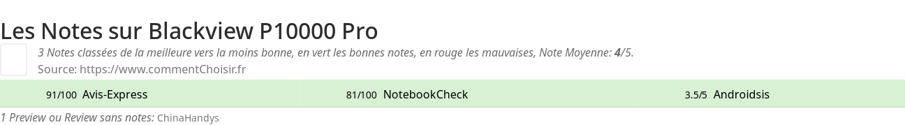 | 91/100 Avis-Express | 81/100 NotebookCheck | 3/5 Androidsis |