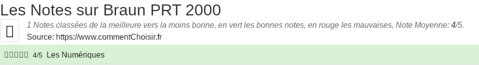 Quelle note pour Braun PRT 2000 ?