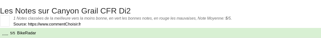 Pour mieux comparer, nous avons cherché pour vous les avantages et inconvénients de Canyon Grail CFR Di2 et les notes données par les sites spécialisés.
