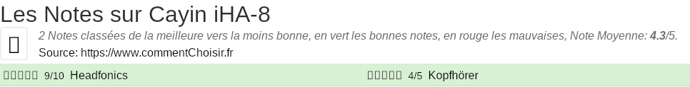 Voici tous les 2 avis et les tests que nous avons trouvé sur le Casque Cayin iHA-8 avec les 2 notes et les commentaires des testeurs dans leur review.