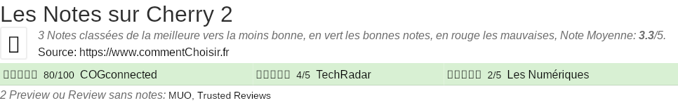 Pour mieux comparer, nous avons cherché pour vous les avantages et inconvénients de Cherry 2 et les notes données par les sites spécialisés.