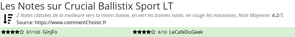 Les notes des sites et magazines internet peuvent etre peut-etre biaisés, au moins avec les avis client et des utilisateurs qui ont acheté Crucial Ballistix Sport LT sur amazon ou la fnac, on est sur d'avoir de vrais critiques sur ce produit. (les liens vers les magasins sont sponsorisés).