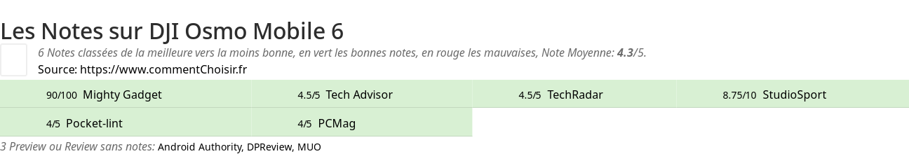 Les notes des sites et magazines internet peuvent etre peut-etre biaisés, au moins avec les avis client et des utilisateurs qui ont acheté DJI Osmo Mobile 6 sur amazon ou la fnac, on est sur d'avoir de vrais critiques sur ce produit. (les liens vers les magasins sont sponsorisés).