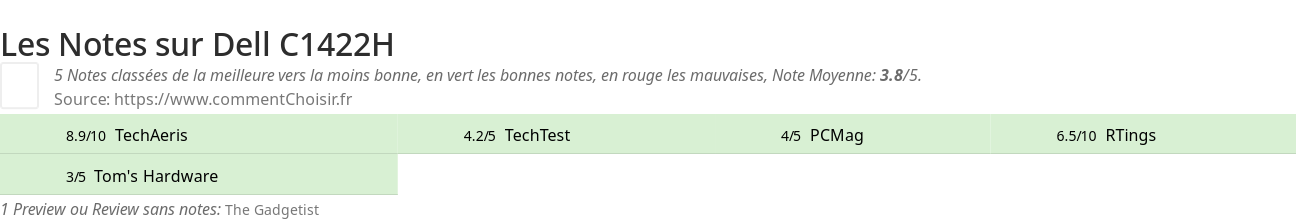 Pour mieux comparer, nous avons cherché pour vous les avantages et inconvénients de Dell C1422H et les notes données par les sites spécialisés.