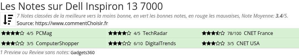 Les notes des sites et magazines internet peuvent etre peut-etre biaisés, au moins avec les avis client et des utilisateurs qui ont acheté Dell Inspiron 13 7000 sur amazon ou la fnac, on est sur d'avoir de vrais critiques sur ce produit. (les liens vers les magasins sont sponsorisés).
