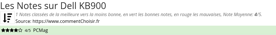 Les notes des sites et magazines internet peuvent etre peut-etre biaisés, au moins avec les avis client et des utilisateurs qui ont acheté Dell KB900 sur amazon ou la fnac, on est sur d'avoir de vrais critiques sur ce produit. (les liens vers les magasins sont sponsorisés).