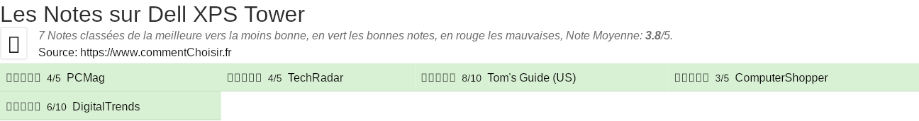 Les notes des sites et magazines internet peuvent etre peut-etre biaisés, au moins avec les avis client et des utilisateurs qui ont acheté Dell XPS Tower sur amazon ou la fnac, on est sur d'avoir de vrais critiques sur ce produit. (les liens vers les magasins sont sponsorisés).