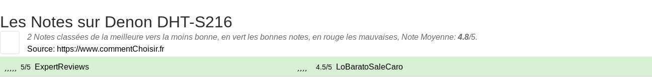 Pour mieux comparer, nous avons cherché pour vous les avantages et inconvénients de Denon DHT-S216 et les notes données par les sites spécialisés.