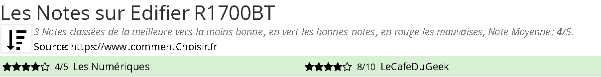 Pour mieux comparer, nous avons cherché pour vous les avantages et inconvénients de Edifier R1700BT et les notes données par les sites spécialisés.