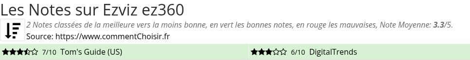 Les notes des sites et magazines internet peuvent etre peut-etre biaisés, au moins avec les avis client et des utilisateurs qui ont acheté Ezviz ez360 sur amazon ou la fnac, on est sur d'avoir de vrais critiques sur ce produit. (les liens vers les magasins sont sponsorisés).