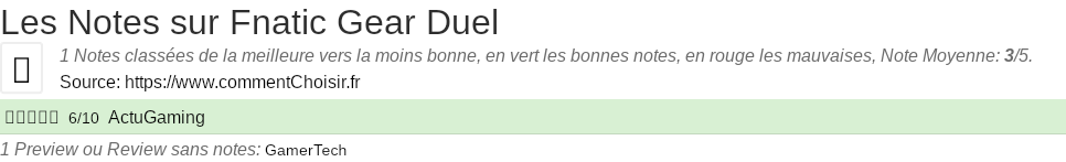 Pour mieux comparer, nous avons cherché pour vous les avantages et inconvénients de Fnatic Gear Duel et les notes données par les sites spécialisés.
