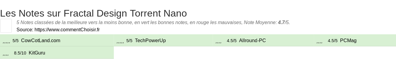 Les notes des sites et magazines internet peuvent etre peut-etre biaisés, au moins avec les avis client et des utilisateurs qui ont acheté Fractal Design Torrent Nano sur amazon ou la fnac, on est sur d'avoir de vrais critiques sur ce produit. (les liens vers les magasins sont sponsorisés).