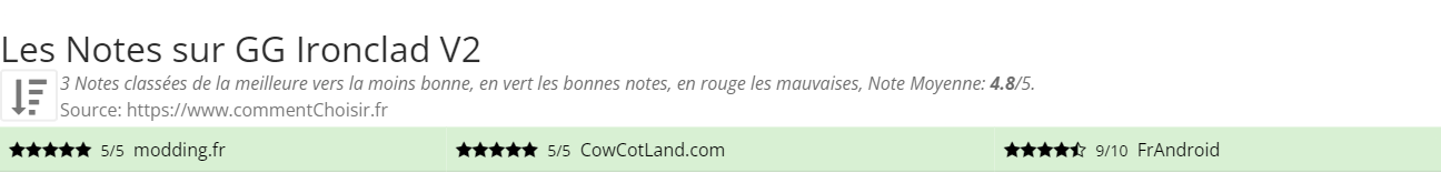 Les "Pour et Contre" sur GG Ironclad V2 détails des avis et notes