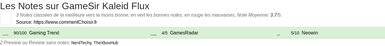Pour mieux comparer, nous avons cherché pour vous les avantages et inconvénients de GameSir Kaleid Flux et les notes données par les sites spécialisés.