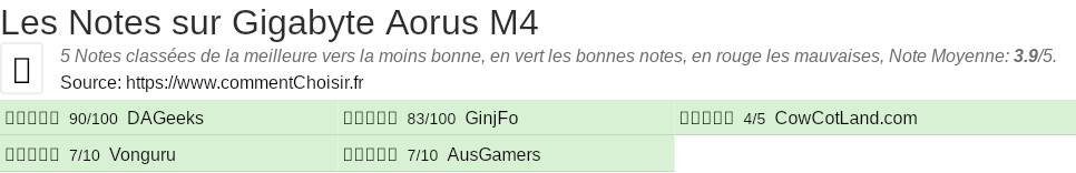 Les notes des sites et magazines internet peuvent etre peut-etre biaisés, au moins avec les avis client et des utilisateurs qui ont acheté Gigabyte Aorus M4 sur amazon ou la fnac, on est sur d'avoir de vrais critiques sur ce produit. (les liens vers les magasins sont sponsorisés).