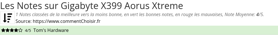 Les notes des sites et magazines internet peuvent etre peut-etre biaisés, au moins avec les avis client et des utilisateurs qui ont acheté Gigabyte X399 Aorus Xtreme sur amazon ou la fnac, on est sur d'avoir de vrais critiques sur ce produit. (les liens vers les magasins sont sponsorisés).